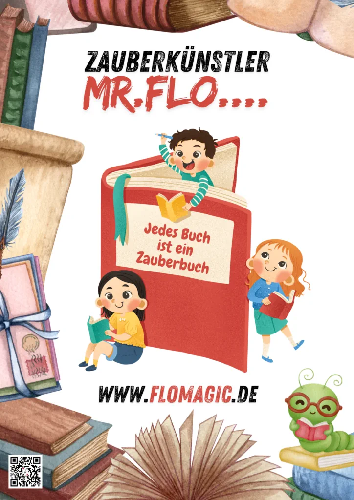 Bücher sind mehr als Seiten: Sie öffnen Türen in Fantasiewelten. In der Lese-Zauber-Show von Mr. Flo erleben Kinder Geschichten mit Humor, starken Bildern und viel Mitmachen – und bekommen Lust aufs Lesen.